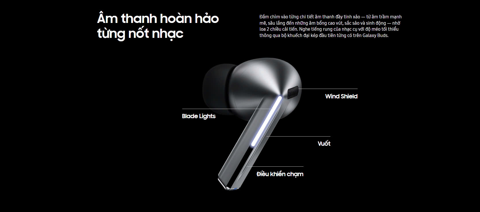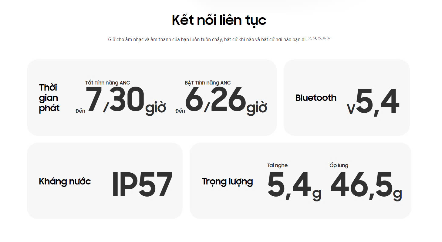 Tiện ích: Phiên dịch trực tiếp, Thanh ánh sáng Blade Lights, Sạc không dây Chống nước IP57, Có mic thoại, Sạc nhanh, Chống ồn chủ động ANC, Galaxy AI