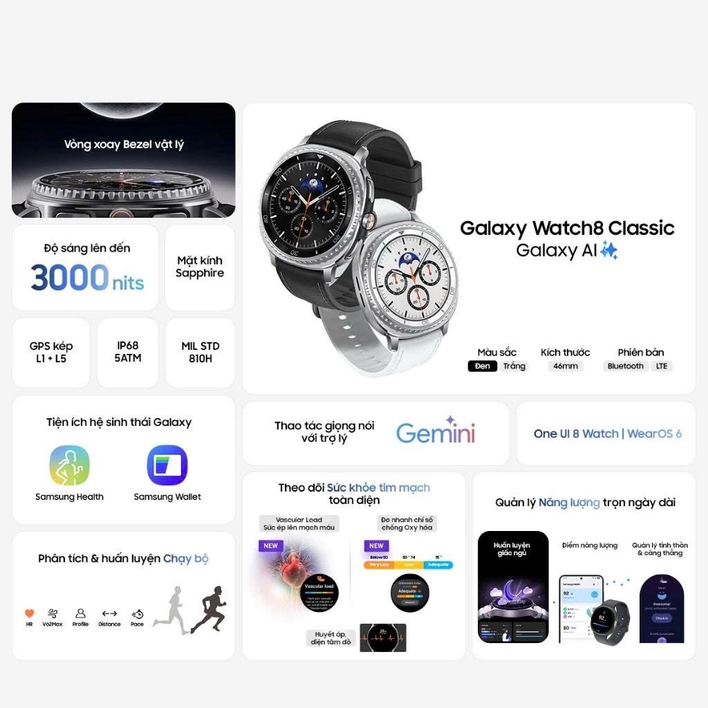 Đồng hồ thông minh Samsung Galaxy Watch 8 Classic 46mm – Bluetooth/LTE – Mới 100% – Hàng chính hãng